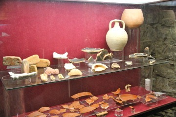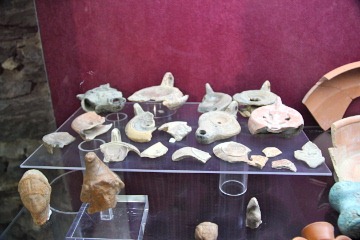 A section of a Roman theatre discovered recently whilst restoring foundations of a tower. A terracotta vessel dedicated to the Roman fertility god, Priapus.