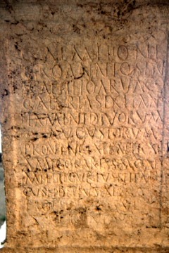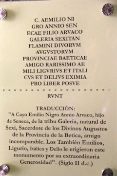 A funeral monument dedicated to a prominent citizen of Sexi, Emilio Nigro Annio Arvaco, who was also an Augustales priest to the emperor. It was found near the salt factory.