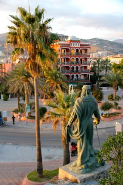 Almuñécar’s Casablanca Hotel was in a great location near one of its main beaches. Despite messing up our pre-arranged car parking arrangements that led to some inconvenience and more expense, we were upgraded to a sea view apartment which overlooked the powerful bronze statue of Abd al-Rahman I who first established Islamic presence here on August 15, A.D.755. The following year Abd al-Rahman I had conquered Cordoba making it the capital of his emirate.