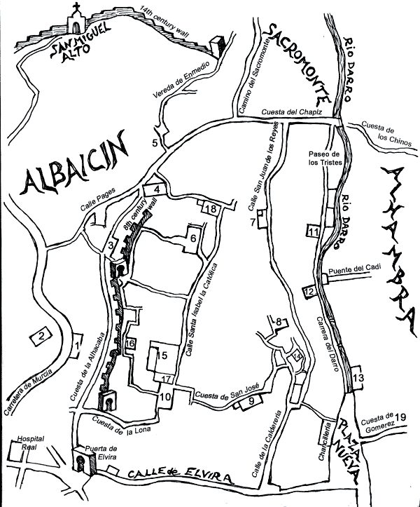 A map of the Albaicin quarter. Our apartment was on ‘Calle San Jose Alta’ near the Church of San Jose (9) and its A.D.1050 minaret, one of only two that survive in Granada