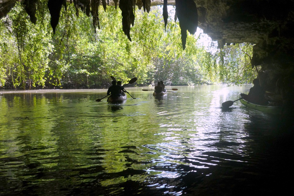 On the way to the rock art caves kayakers paddle through dark water tunnels that lead to limestone sea caves or massive grottoes that have huge stalactites and stalagmites such as Thum Lod Thi. A word of warning: watch the weather closely as tourists have been caught out by flash floods in Thai caves.