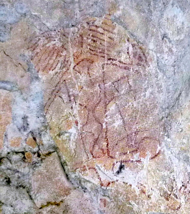 Although it’s difficult to absolute date cave art, Phee Hua Cave art is relatively dated circa 5,000 B.P.