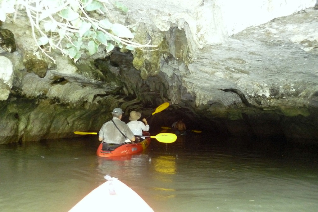 Tourists travelling to the south-west coast of Thailand around the usual resort sites of Phuket and Phi Phi Island should stop in Krabi Province to see some of Thailand’s best prehistoric cave art. Thailand can boast approximately 170 cave art sites, 23 in southern Thailand with 10 of these heritage sites around the Krabi/Phangnga area. The coastal town of Aonang is a good location for a base and the original tour guide, who calls himself ‘Caveman’, is just the person for this worthwhile adventure. The Krabi village of Ban Bor-Thor is the starting point for a kayaking experience that most people find is very good exercise with little trouble in manoeuvring flat-bottomed PVC kayaks up the river and through the natural channels among the amazing mangroves. However, one Singaporean couple, who were novices to kayaking, did flip their kayak but were quickly assisted aboard again.
