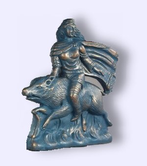 Arduinna: In the Ardennes region of Gaul she is the patroness of the wild boars, a sacred animal of the Gauls. Linked to forested heights, to the moon and to wild animals her worship was popular in the Ardennes region named after her. The Ardennes or ‘deep forest’ is mostly in France but stretches out to the south of Belgium and also to Luxemburg and Germany. The worship of Arduinna in this region was so entrenched that in A.D. 565 the Christian church preached to the population of Villers-devant-Orval to forgo the worship of Arduinna. The Roman equivalent goddess was Diana.