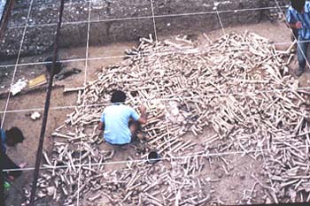 Here an entire structure was built from the long bones of some 200 people, mostly young men (Hamilton 2009: 23). Over 5000 weapons were also buried with the decapitated victims believed to be the Lexovii, a Gallic tribe living in Normandy at that time. Pollen and seeds confirm the battle took place toward the end of summer probably in 280-260 B.C. (Romanarmytalk.com)