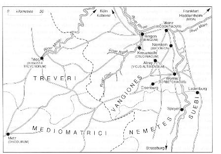 Vangiones territory with neighbouring tribes