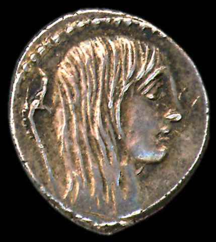 This Roman coin was minted in 48 B.C. showing a female Gaul with a typical Celtic carynx behind. It’s a likely representation of a Gallic prisoner. Hear hair is long in a non-Roman fashion perhaps with limed dreadlocks.